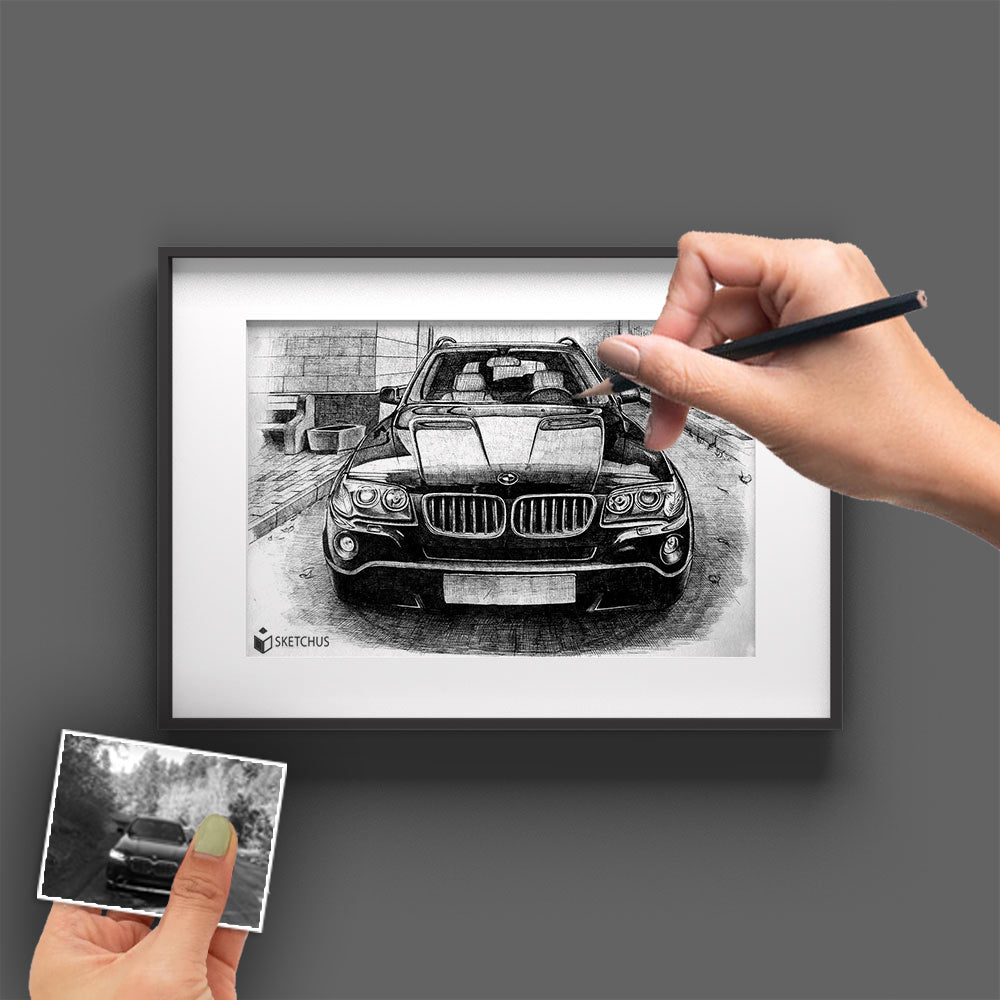 Have a car drawn - car as a drawing/poster - auto portrait gift for car lovers